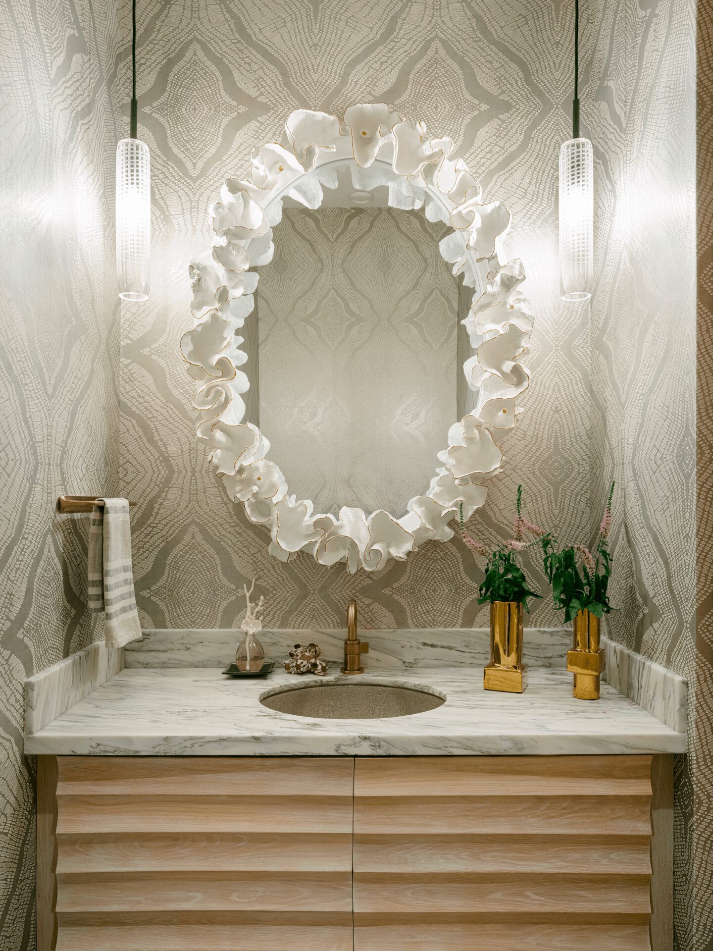 We achieve this balance through the use of scale and proportion, the combination of architectural elements, lighting details, and an organic flow.