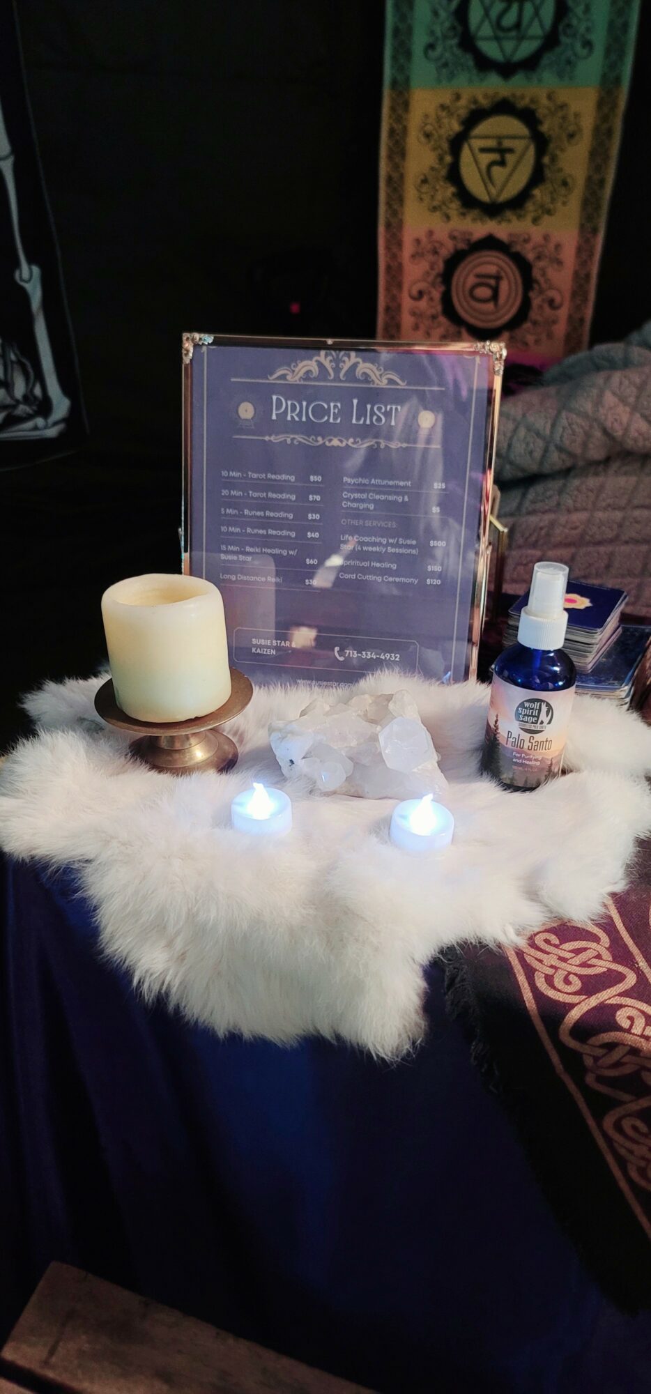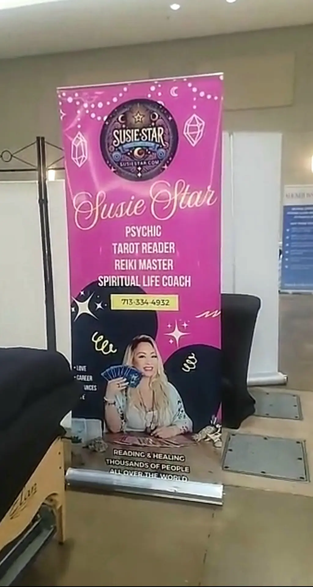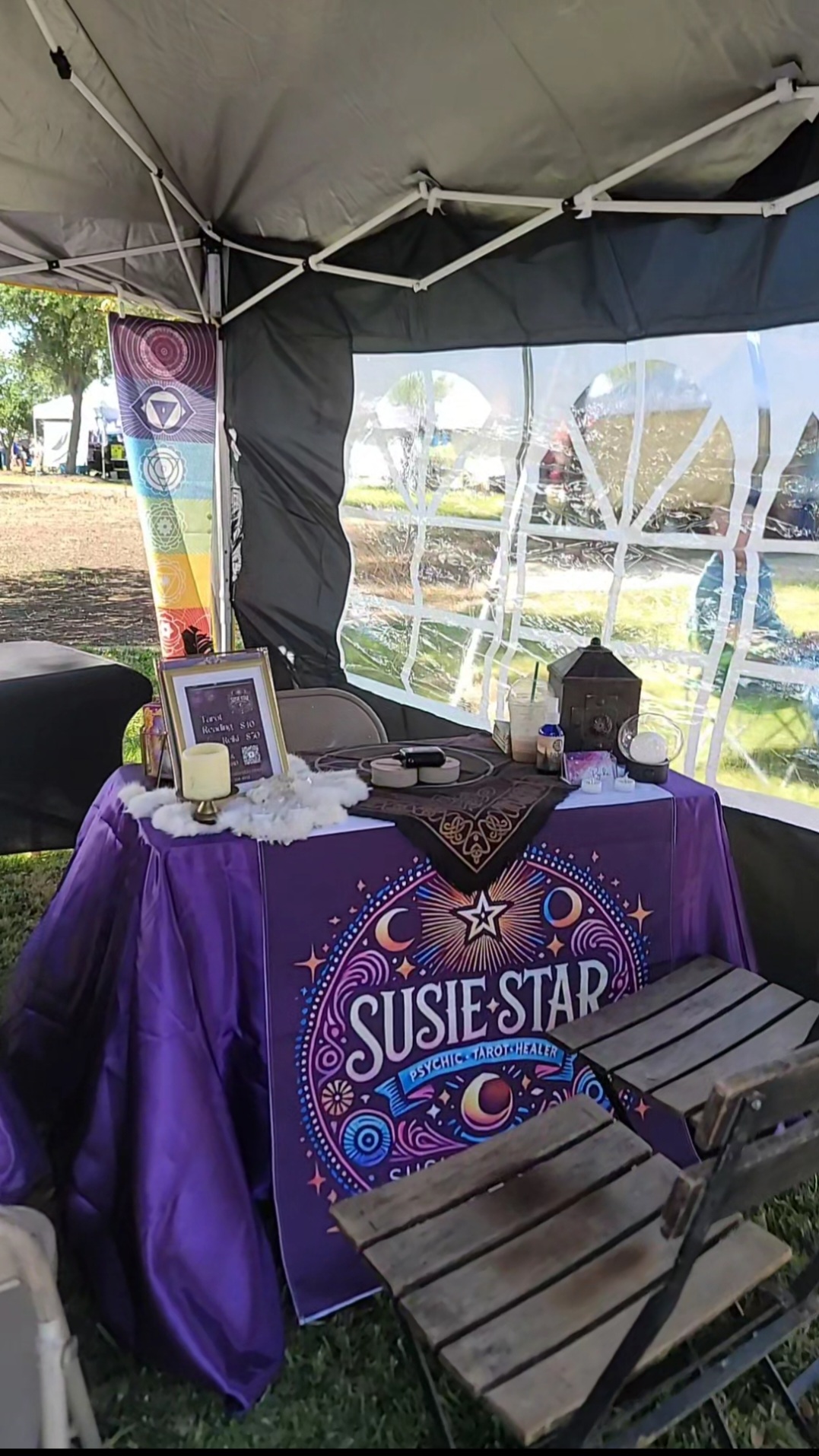 My brand, Susie Star Psychic and Tarot Reader, has grown into more than just me. I’ve been blessed to build Team Star, a collective of mystical practitioners including a runes readier and, most recently, our astrologer. Together, we bring a range of tools and traditions to festivals, wellness expos, and fairs across Houston, Conroe, Galveston, and beyond.
