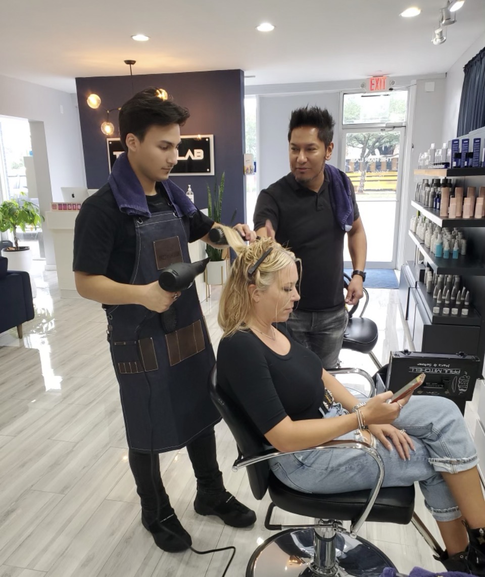 That’s how The Hair Lab Salon was born. From day one, things seemed to fall perfectly into place. Yes, there were challenges, but God’s timing was evident in every step we took. Today, after nearly seven years in business, The Hair Lab has become a thriving salon serving the Spring Branch and Hilshire Village communities. Our son MJ has now joined the industry — and fittingly, he started at the same Toni & Guy where my journey began.