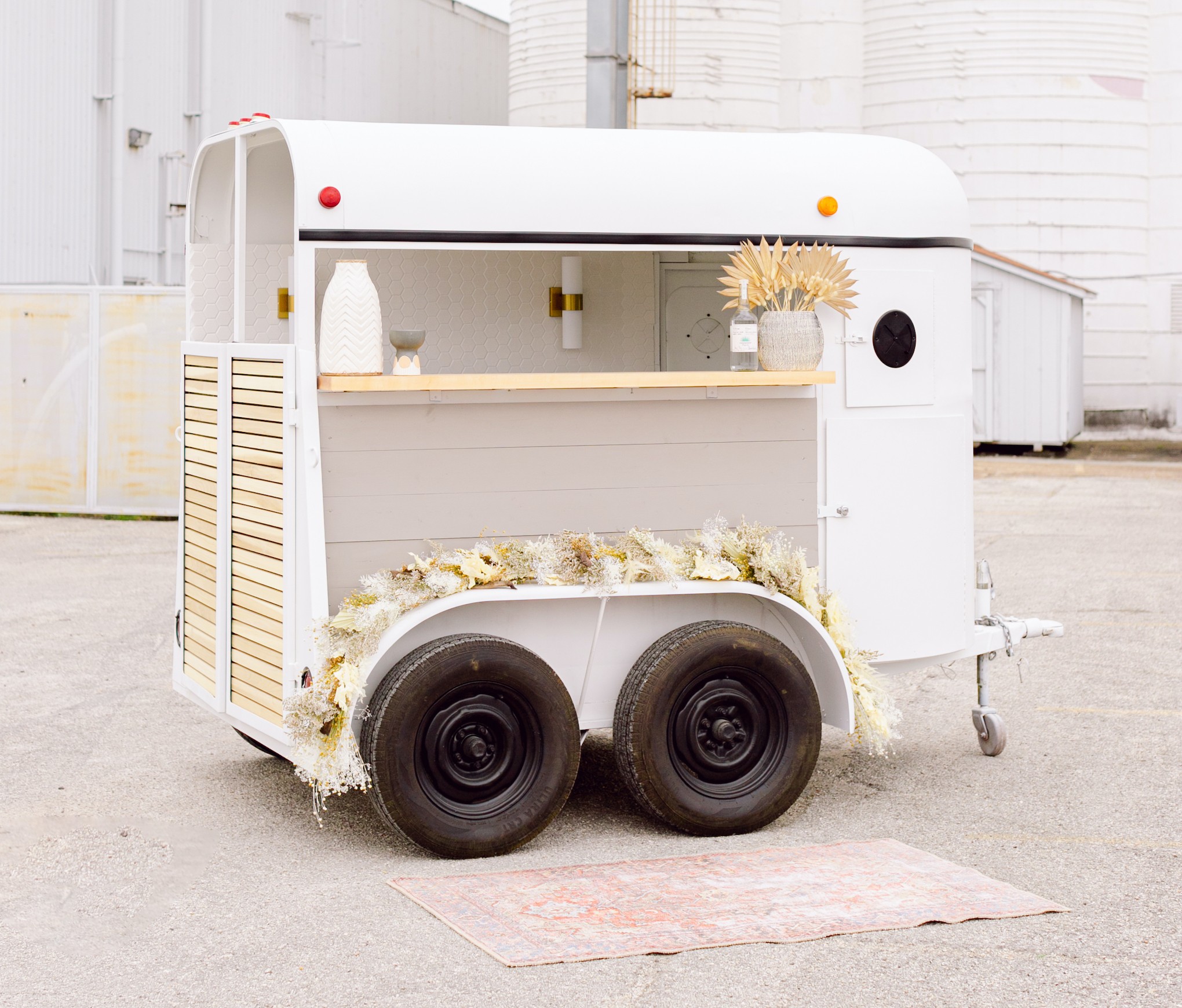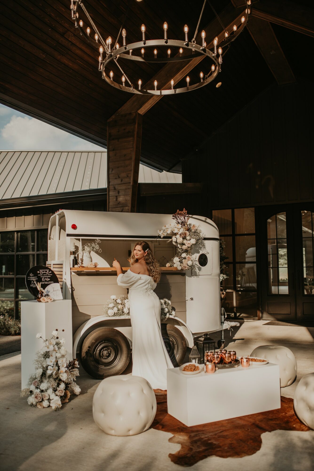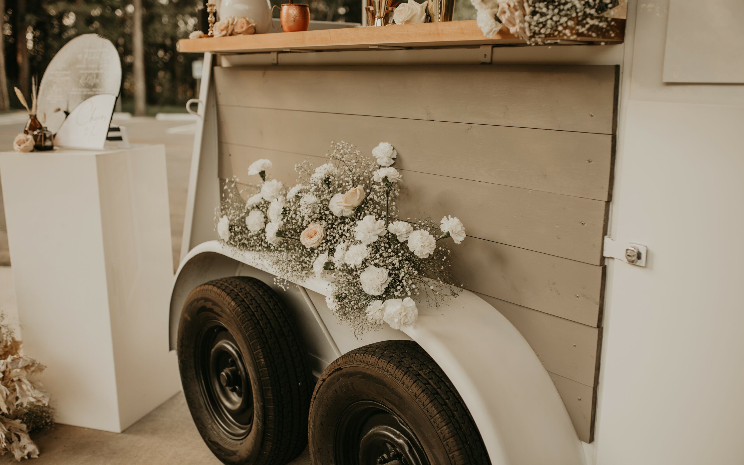 The Watering Hole Mobile Bar was an idea born shortly after our wedding in January of 2020. We are husband & wife owned and our favorite dates are just finding a new bar or brewery, trying the newest drink edition to the menu, and striking up a conversation with the bartenders. After our wedding, we could not stop talking about how every perfect moment and detail was made possible by our incredible vendors. The magic and energy they all brought to our event was infectious and we wanted to be able to create that same experience for others in a way that felt special to us. We brainstormed how we could make a bar experience come to life and landed on a mobile bar we could bring to our clients in any way they wanted! Fast forward to today, we fully renovated a 2 horse trailer (completely on our own) to a more neutral and modern theme. We have served at showers, bridal stores, retail grand openings, and weddings!