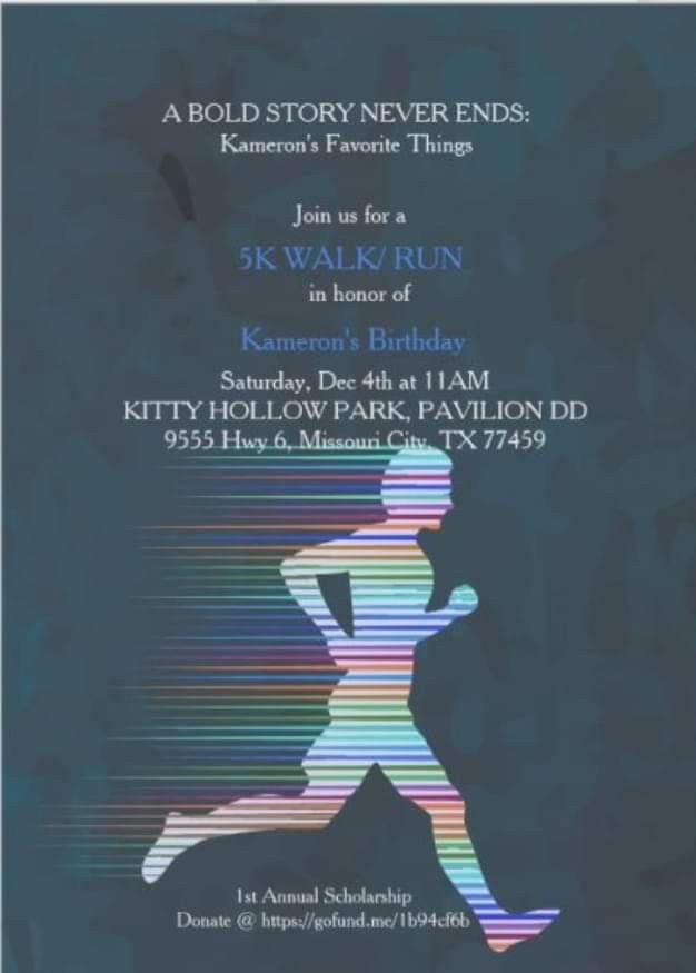 One major goal of A Bold Story Never Ends is to extend Kameron’s passion for education by providing scholarships to area high school students interested in pursuing higher education. Kameron was always encouraging others to find their passion and pursue them.