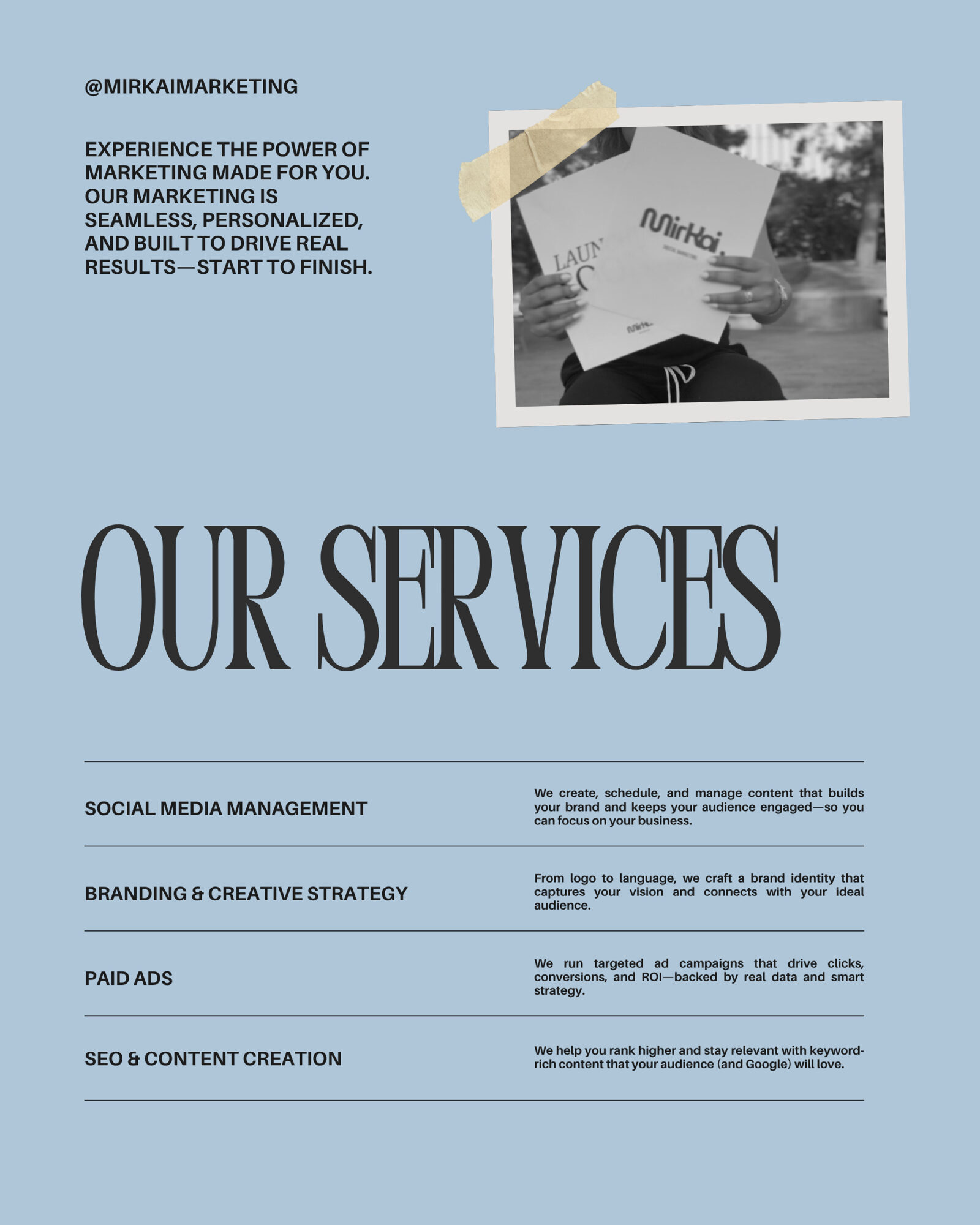 At MirKai Marketing, we help small business owners grow their brands online through personalized strategies in SEO, social media, email, and content marketing. What sets us apart is our focus on authenticity, we like to create marketing that reflects who you are and connects with your audience.