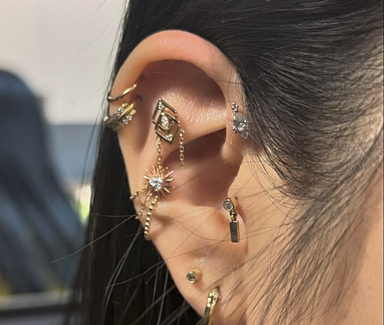 Curation is one of my favorite parts of my job. Helping clients deck out their new or existing piercings is so much fun, and the time I get to spend with them doing that truly means the world because it allows me to make connections. I love having clients that eventually turn into something more. I have a client named yeji whom I love with my whole heart and soul, I’ve been piercing her since i literally was a baby piercer. Shes followed me to three or four different shops all over Houston, I’ve gotten to know her so well, I’ve seen her get engaged, married, I got to help her with her earrings a few weeks before her wedding, and I’ve met her in a parking lot when the shop was closed because top to an earring fell off. I would literally be there for her through anything. And then there’s India. India first got pierced by me at 14, she was so terrified. It took me two hours to calm her down enough to get her navel pierced. I’ve gotten to see her get her drivers license, show her baby goat Atticus in an FFA livestock show, and pierced her probably twenty times now. She’s like my kid now! It’s those types of connections that I love the most, those are the ones that even on days when I feel like I suck where I’m like you know what no. I’ve gotten so many opportunities doing what I do, it is truly a blessing to come to work and do what you love with people whose smiles light up the room.