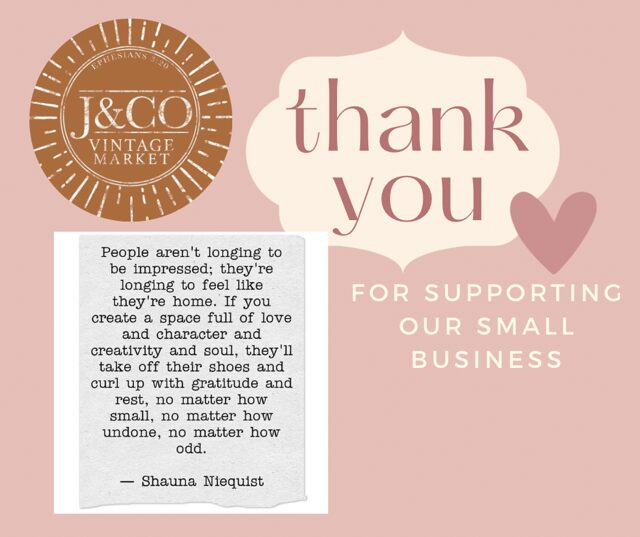We are fully dependent on foot traffic. Day to day I pour over our sales, deduct our many expenses and pray it all works out. The big box stores don’t care about you or your money. We do. We know choosing to shop with us means you may have to drive further, or worry about what hours we are/aren’t open, but I promise you we are worth it. Support small businesses, spend your money where it counts and watch all the great ways that impacts your home and others!