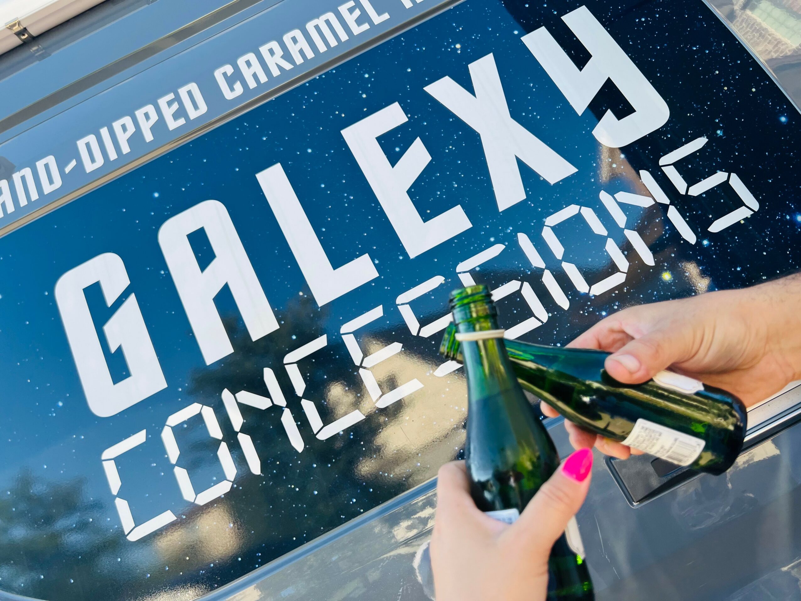 For several years, a mobile food unit was a dream of ours. We created our first business plan circa 2018-19 in Starbucks- that initial dream has yet to come to fruition, but it lit a fire of desire and motivation. Fast forward to 2023, we were living a successful life, stuck in the daily grind. Alex received recognition for earning the company he worked for $1 million in one year, something no one else had ever accomplished for the company- that was it, a mention in the morning meeting. This was about the time Alex decided he didn’t want to make that kind of money for someone else. We started making moves to build our first food truck. A sudden tragedy turned our world upside down and it became difficult for Alex to be at work every day. Alex quit his financially secure job, cashed out his vacation time and 401k, and we poured everything we had into starting Galexy Concessions. Galexy Concessions offers gourmet concessions such as soft serve ice cream, hand-dipped caramel apples, gourmet, small batch popcorn, freshly squeezed lavender lemonade, etc. There were quite a few setbacks, but we had no choice but to persevere as we were now depending solely on this income. November 2022 our ice cream truck was ready, just in time for winter! This journey has been extremely difficult, comical, and rewarding. By August 2023, we had built a reputation for ourselves and relationships, relationships that led us to Excalibur Brewing in Old Town Spring. Excalibur Brewing gave us the opportunity to sublease from them and open up Galexy Grill inside of “Excalibur Dining Hall.” Both Galexy Concessions and Galexy Grill are operated daily by Alex, Felisita, and Karen, Alex’s mom. We receive lots of support and help from Walt, Felisita’s dad; Ava, our oldest daughter; and Christina, our niece. We are currently working on expanding the Galexy brand in a whole new direction!