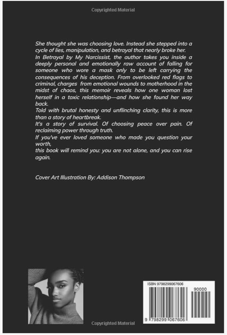 My memoir, Betrayal by My Narcissist, is the raw, unfiltered account of that journey. It follows my experience of being manipulated and blindsided, navigating criminal charges tied to his deception, and ultimately finding the strength to reclaim my life. Writing it became part of my healing an act of courage, clarity, and truth.
