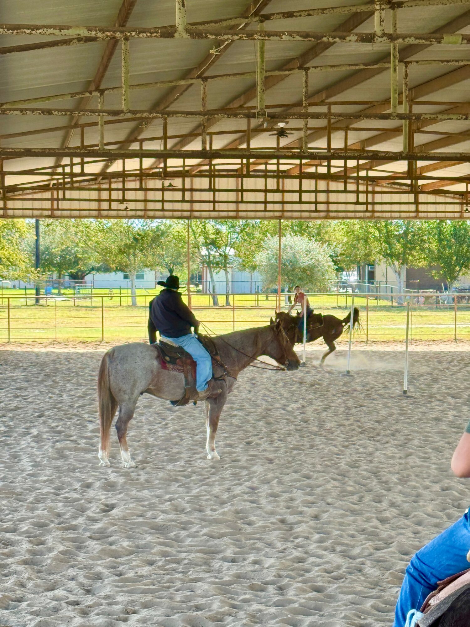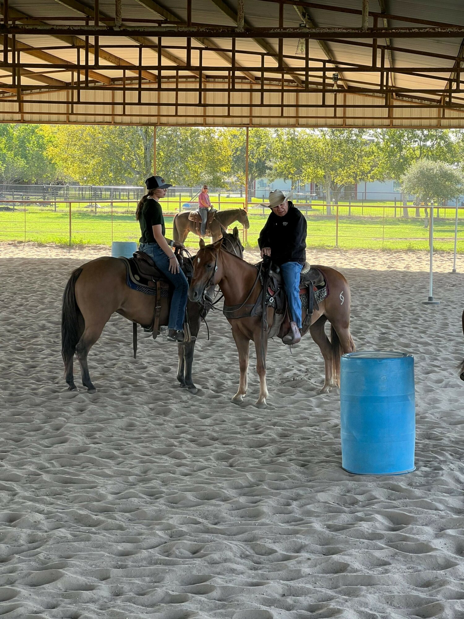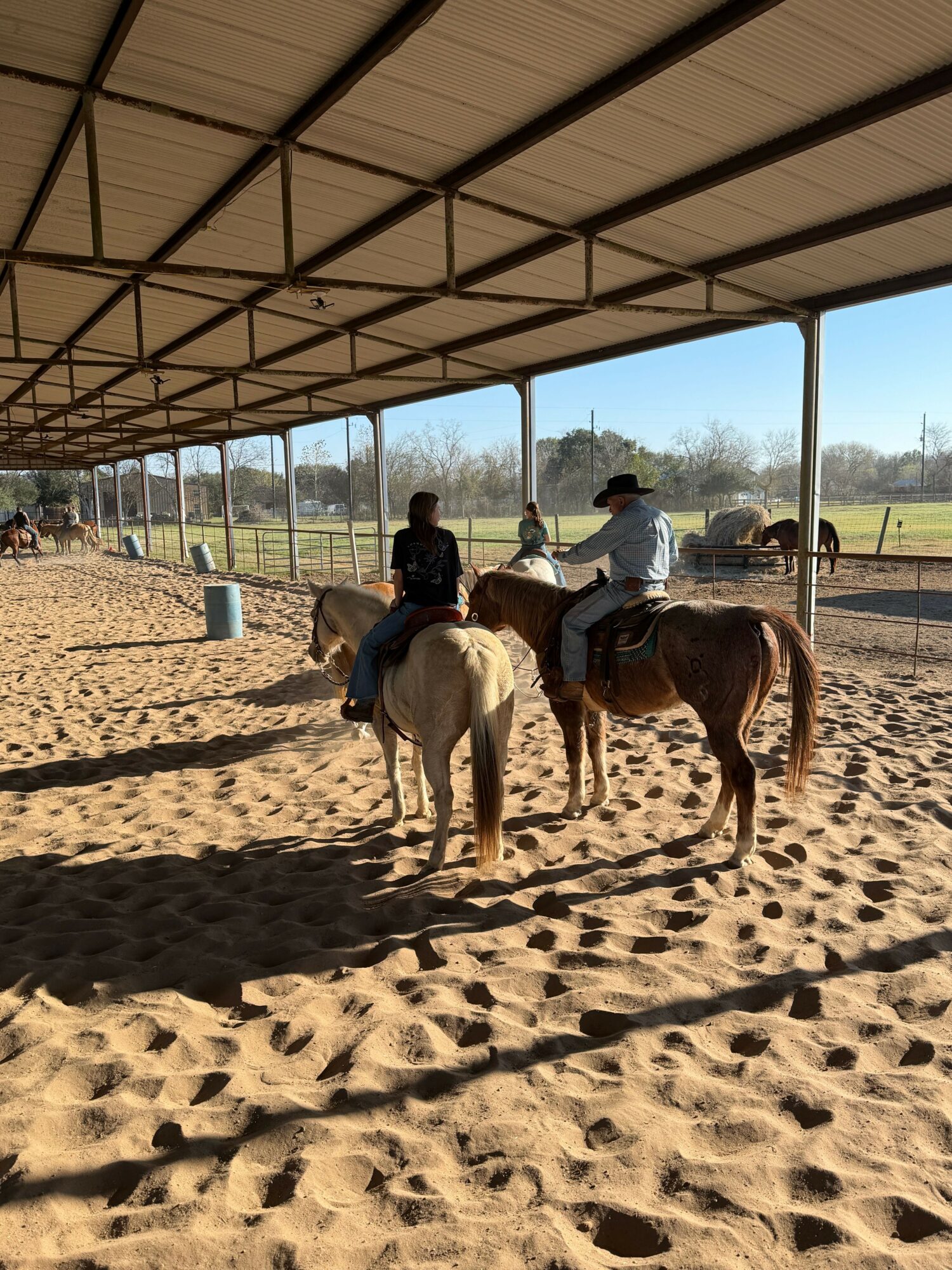 We have many families that board their horses together here and parents are welcome to ride their horses during lessons with their children. We are a diverse riding “family” that consists of children ages 5+, teenagers, college students, and adults. Our students successfully compete in Fort Bend County Youth Rodeo Association (FBCYRA), Texas Youth Rodeo Association (TYRA), Junior High Rodeo, High School Rodeo, and various play days. Competition is not required and many of our students and boarders ride just for fun.