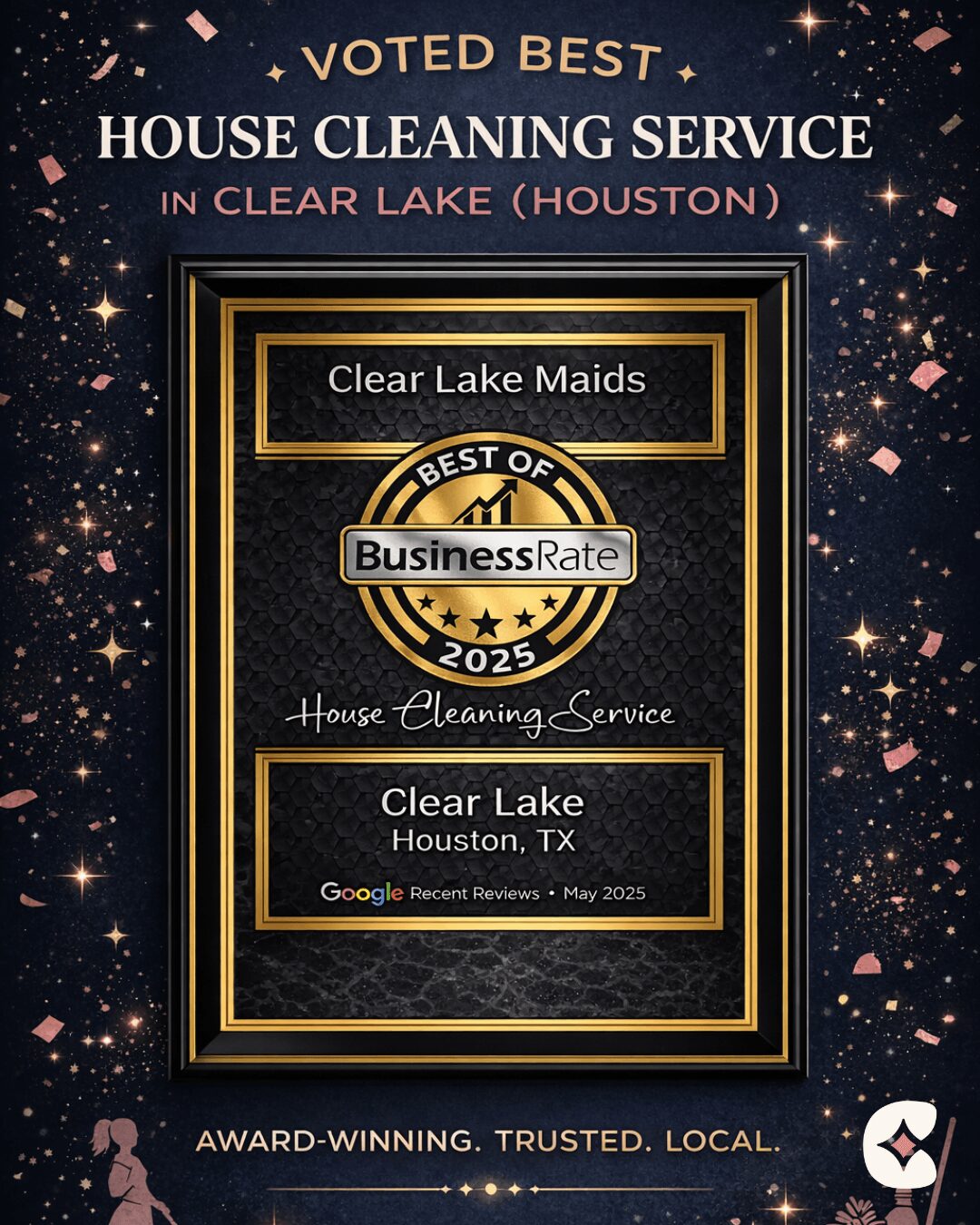 It hasn’t been easy, but the trust we’ve built and the feedback we’ve received make it worth it. Being voted Best House Cleaning Service of 2025 based on client reviews is proof that the hard work — and heart — behind Clear Lake Maids is paying off.