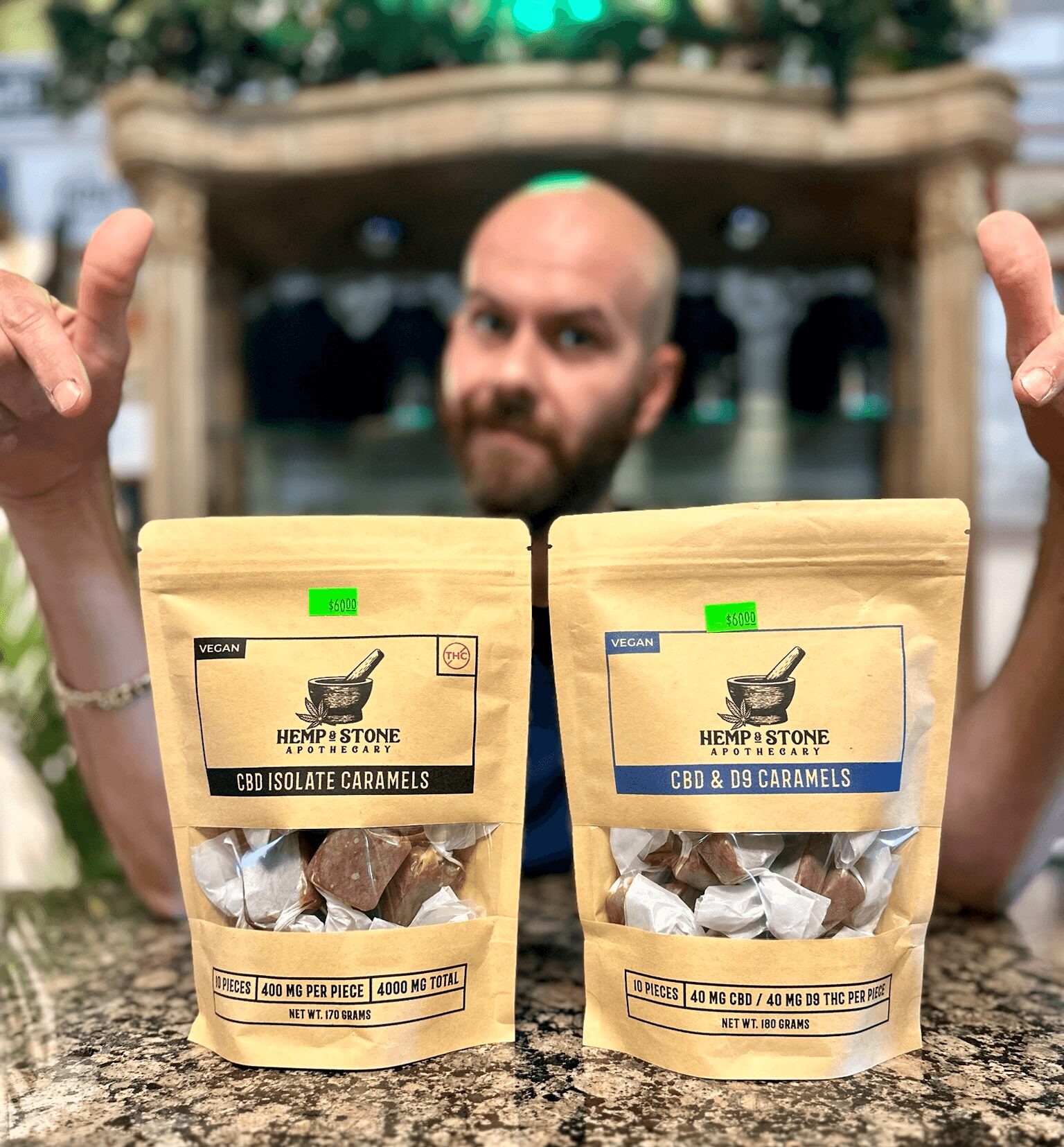 - Hemp & Stone Vegan Caramels: $60 for 10 pieces