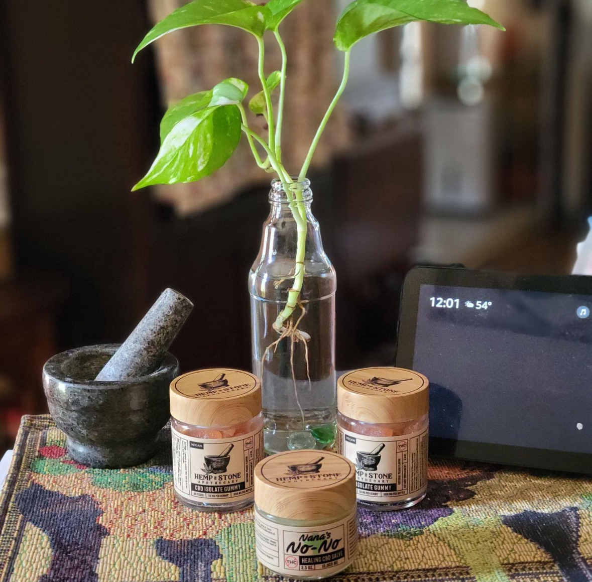 We specialize in plant-based wellness that has been known to promote calm, improve sleep, and ease everyday discomfort. Every product we carry is crafted or curated with intention, focusing on purity, transparency, and effectiveness. Our in-house brand, Hemp & Stone Apothecary, includes tinctures, gummies, and vegan caramels — all made with clean ingredients and no artificial colors or flavors. Each item is lab-tested and carefully formulated to ensure the highest level of quality and consistency. If I wouldn’t give it to my own family, it doesn’t go on our shelves.