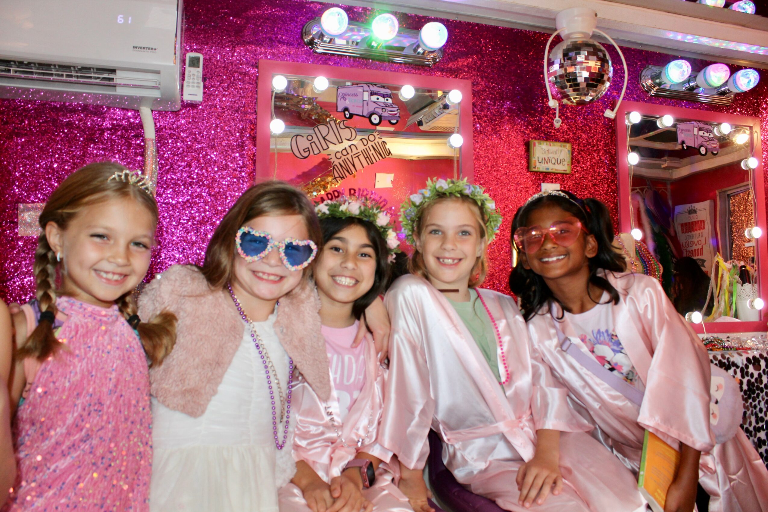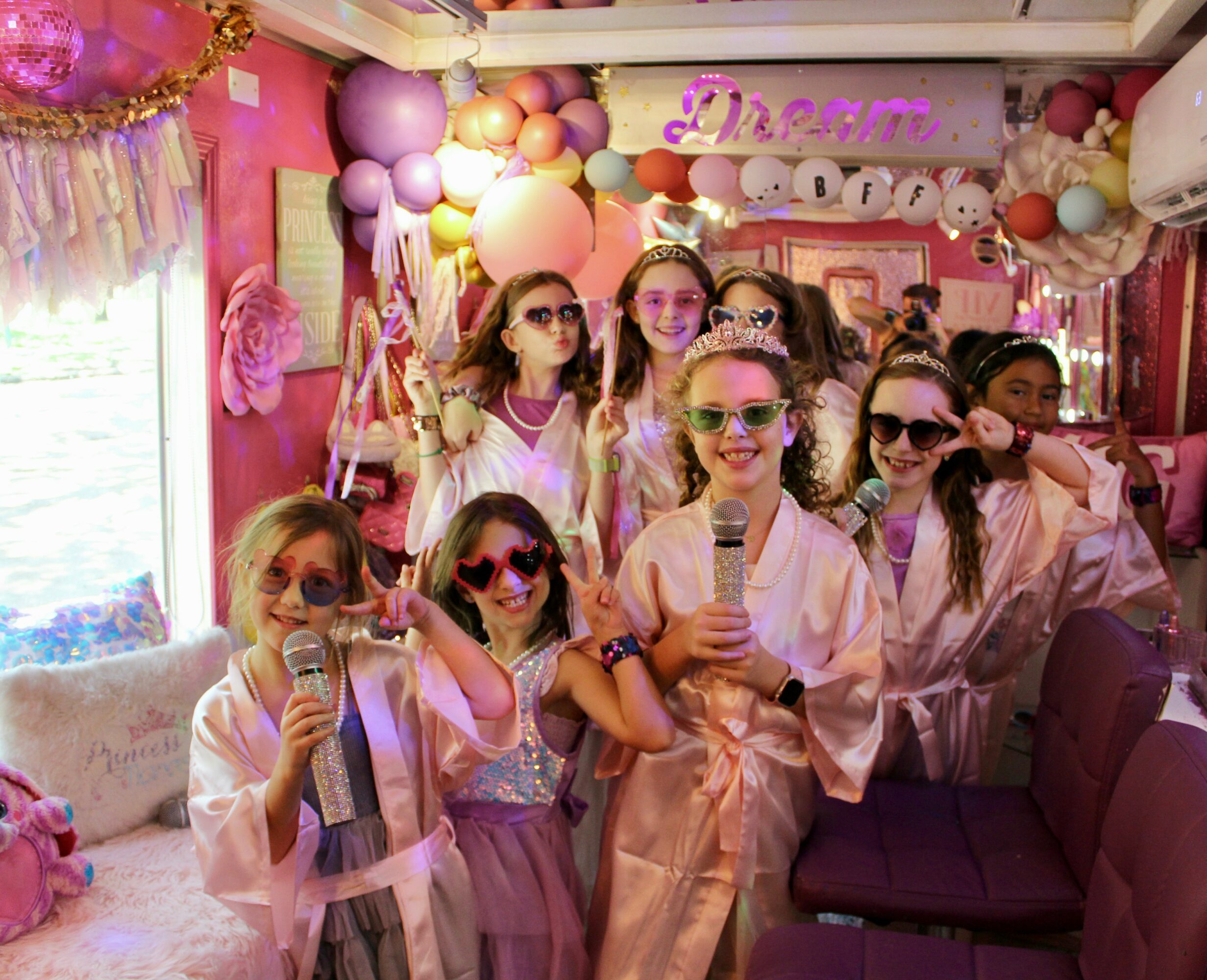 Today, our pink spa bus travels across Houston bringing unforgettable celebrations to families — complete with robes, glitter, music, and laughter. But beyond the glamour, what makes our brand special is our heart. Each event we host carries the message that joy is healing, love is powerful, and kindness always shines brightest.