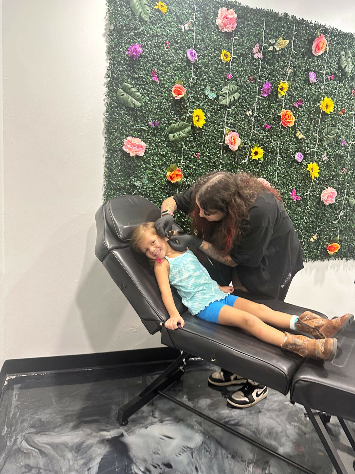 My current branding I focus on is being a “Tattoo Mom” and “Lady Tattooer” that embellishes the warm, supportive, creative, and kind environment for all clients and their young ones to be present around whether for their first piercing or tattoo. I tattoo and pierce a lot of mothers and daughters, but also a good range of clientele.