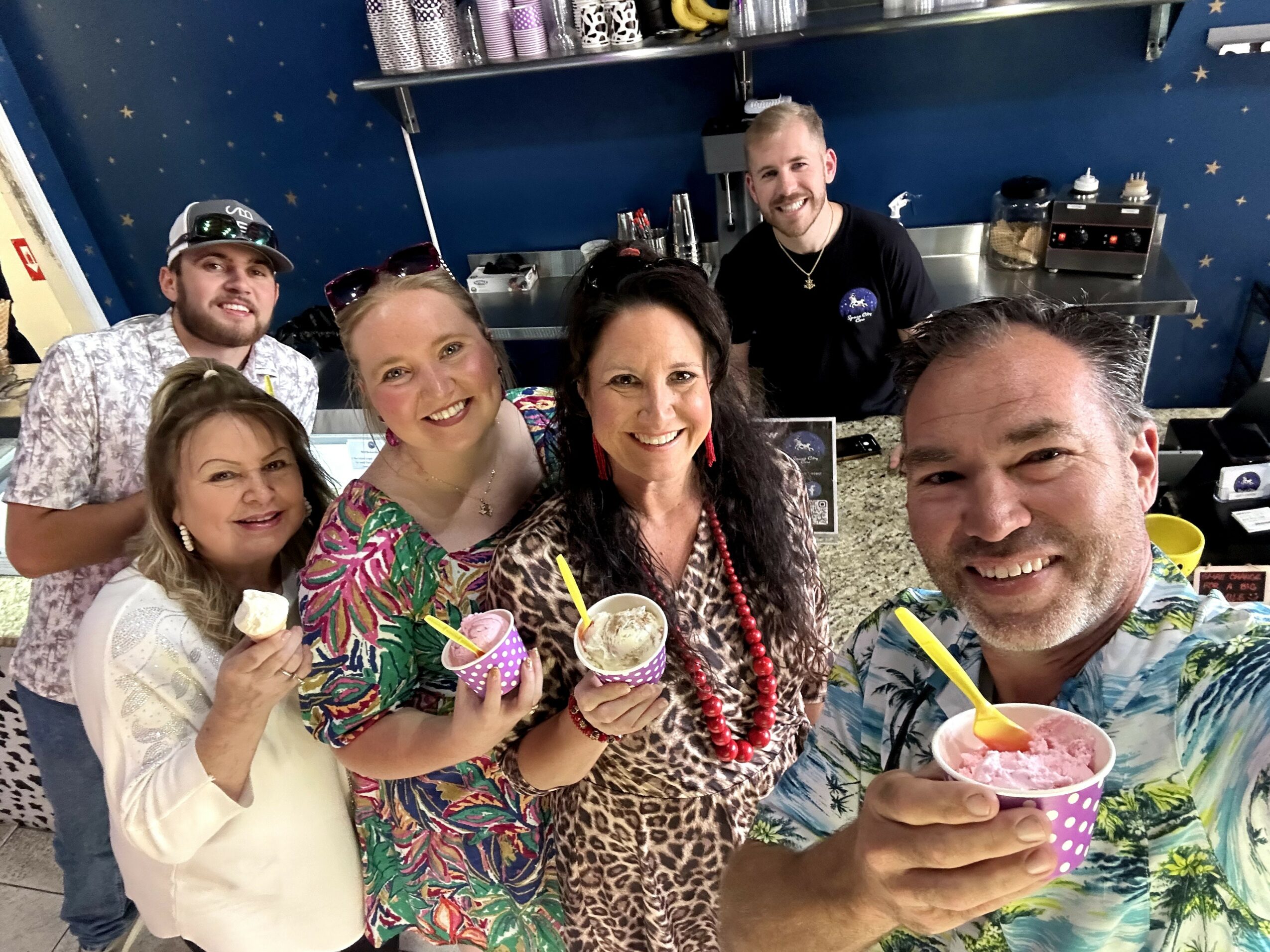 More than a dessert shop, Space City Cow has become a community hub where locals and travelers gather for more than sweets—they come for the experience, the stories, and the love that goes into every bite. What started as a beloved coastal ice cream shop has now expanded throughout the Houston metro area, offering ice cream catering for corporate, private, and family events. We’ve had the honor of collaborating with renowned restaurants like Pappas Restaurants, Parlor Doughnuts, and Aokicho AYCE Sushi. We’ve also partnered with Blackline Coffee & Donuts and are proud to serve our first Houston high-rise at Amegy Bank Headquarters by the Galleria and soon in their downtown tower as well!