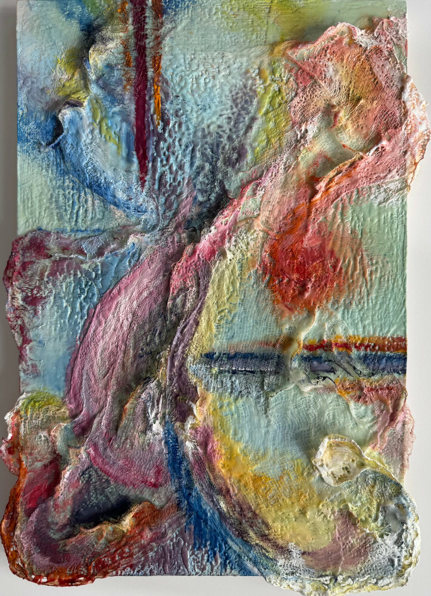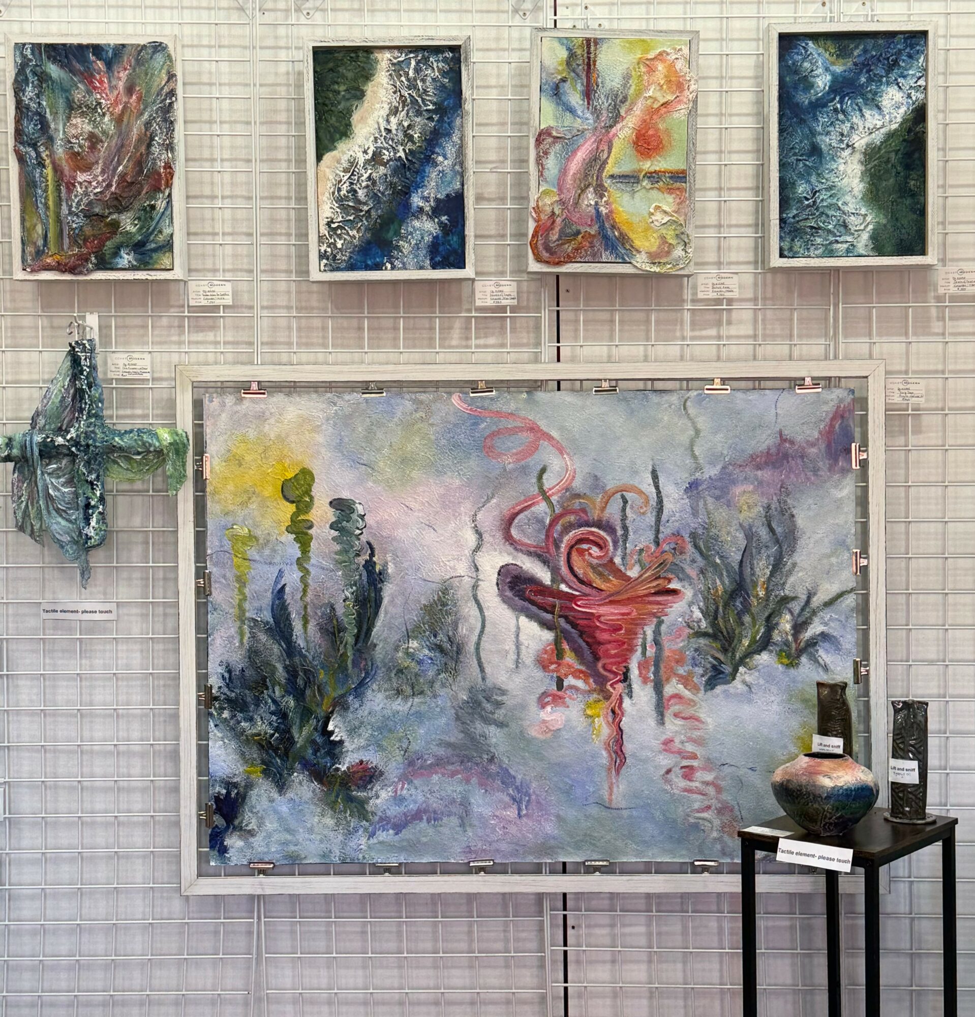 I employ a multisensory approach in presenting my encaustic, assemblage, and sculptural works. Developed through my work with people on the autism spectrum, this method allows me to more fully communicate the emotions embedded in my art. In seeking ways to help students express the intent behind their creations, I discovered that engaging multiple senses could deepen the connection between artwork and observer. My pieces are often paired with music, food, tactile elements, and scent notes to evoke sensation and invite an immersive, emotional experience.