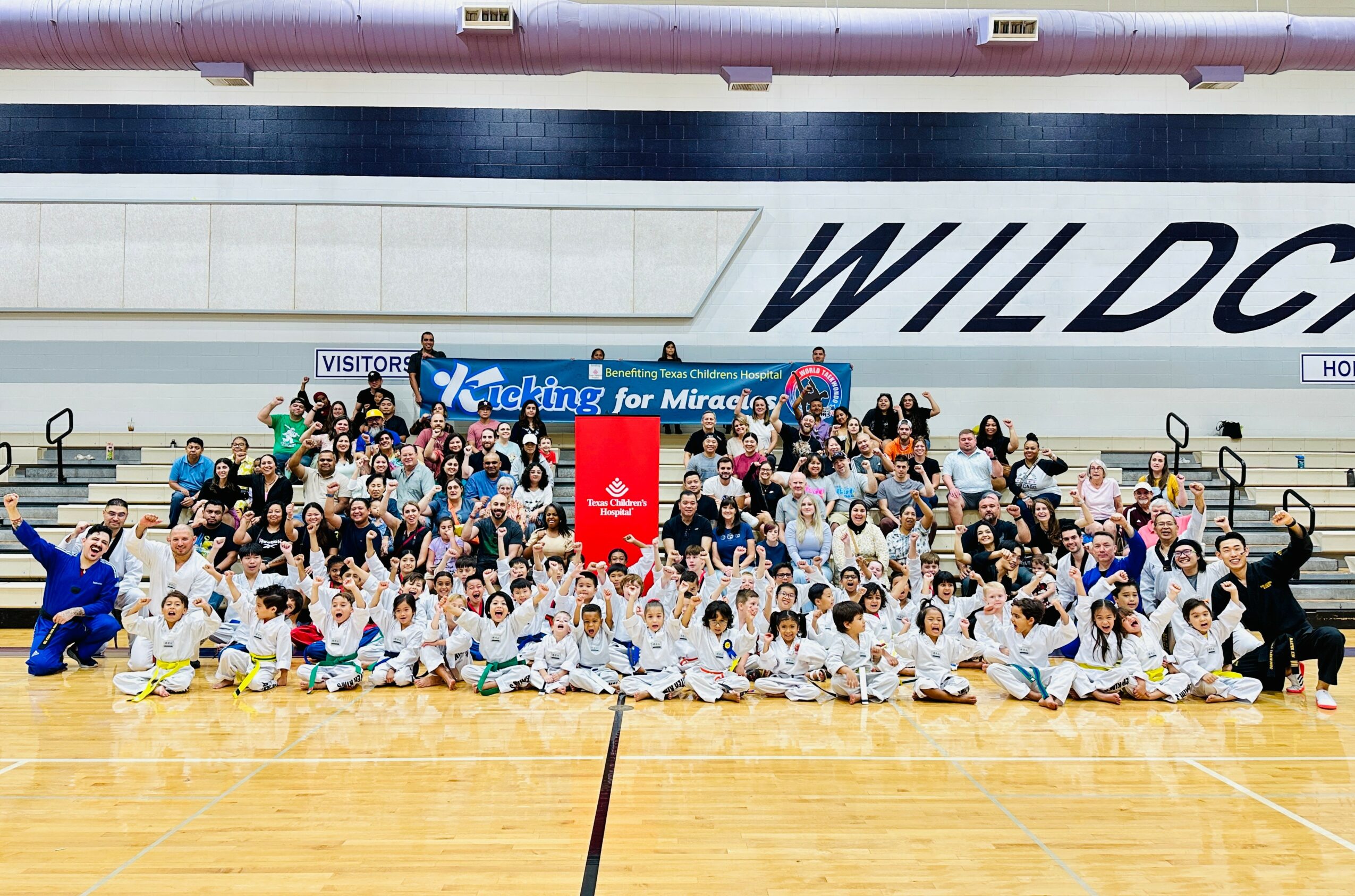 One of our proudest community initiatives is Kicking for Miracles, an annual fundraising event where our students come together to break 1,000–1,500 boards in support of Texas Children’s Hospital. Now in its third year, this event has become a meaningful tradition within our school, with the fourth Kicking for Miracles scheduled for the coming