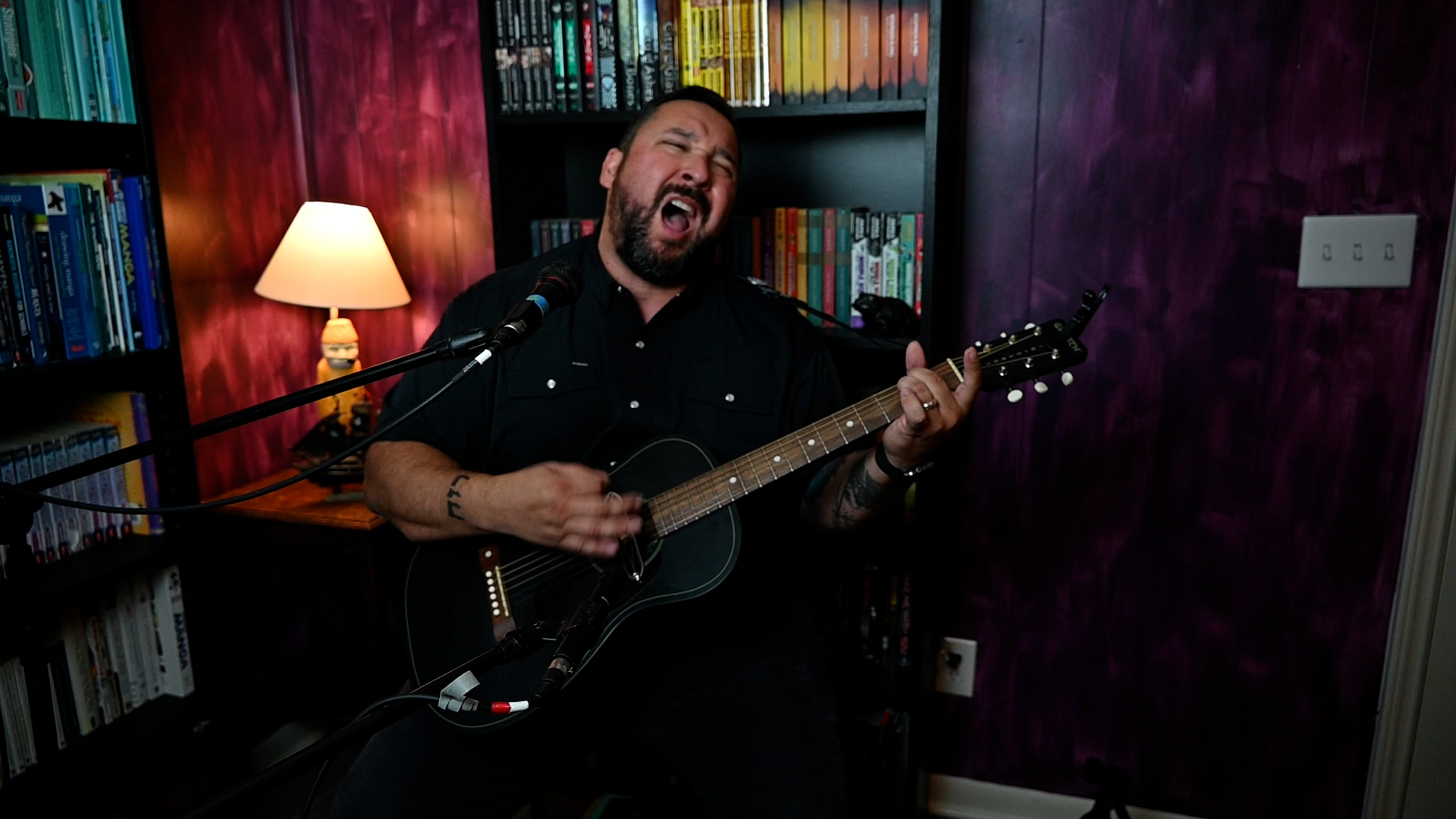 Beyond playing my own music, my wife and I have started a small session recording studio in our house. Artists are able to come and record a couple of songs while we film. We call it “In the Books Session,” since our studio is set like a library