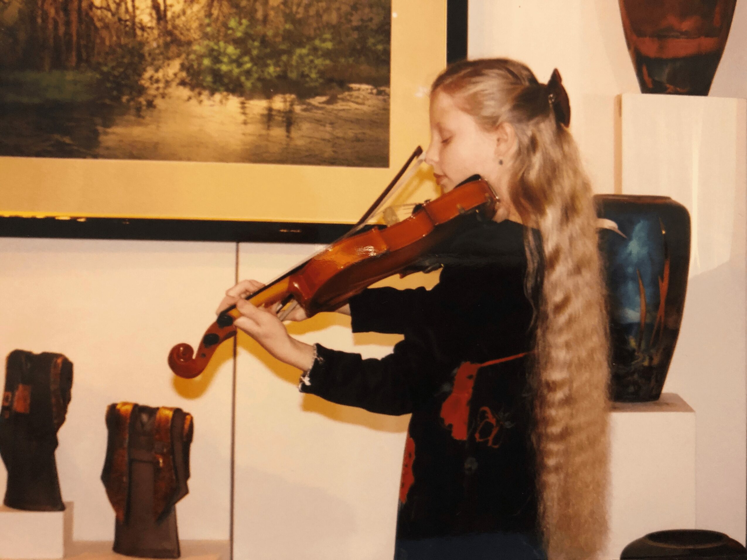 When I was six, I was accepted as the youngest member of the local Youth Orchestra. I was so small that I needed a stool for my feet, and my mom would lovingly sew concert dresses for me. My mom, a piano teacher herself, also gave me piano lessons and performed with me at various events. My dad worked at a local art gallery, and I often performed there during art exhibits, filling the space with enchanting music. I am forever grateful for their unwavering support and love.
