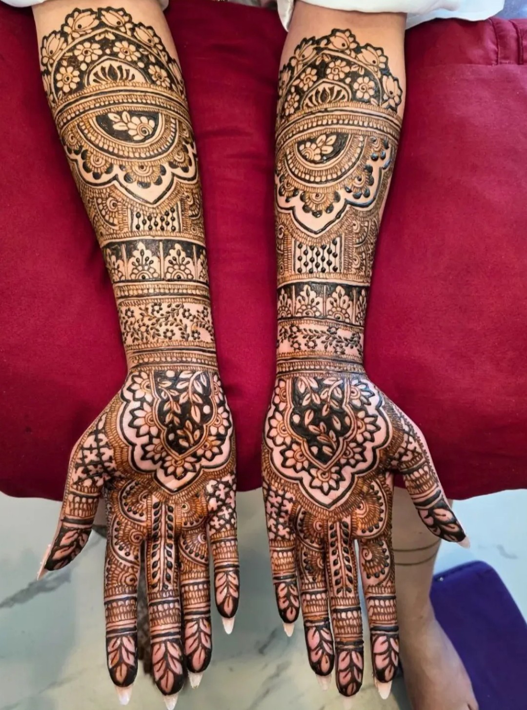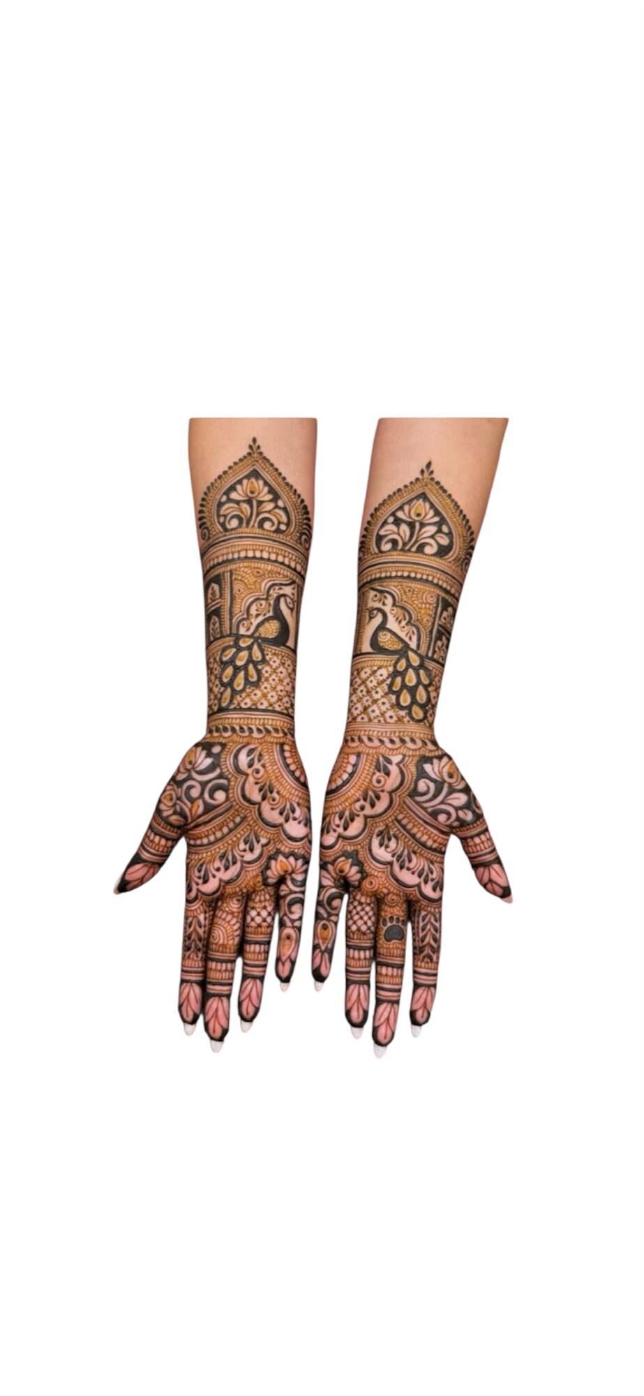 I specialize in bridal henna and am known as a bridal henna artist, creating detailed and customized designs that often include meaningful elements like bride and groom figures, peacocks, lotuses, and other symbols that reflect each couple’s journey. One of my strengths is creating these intricate designs both efficiently and beautifully, even under time pressure.