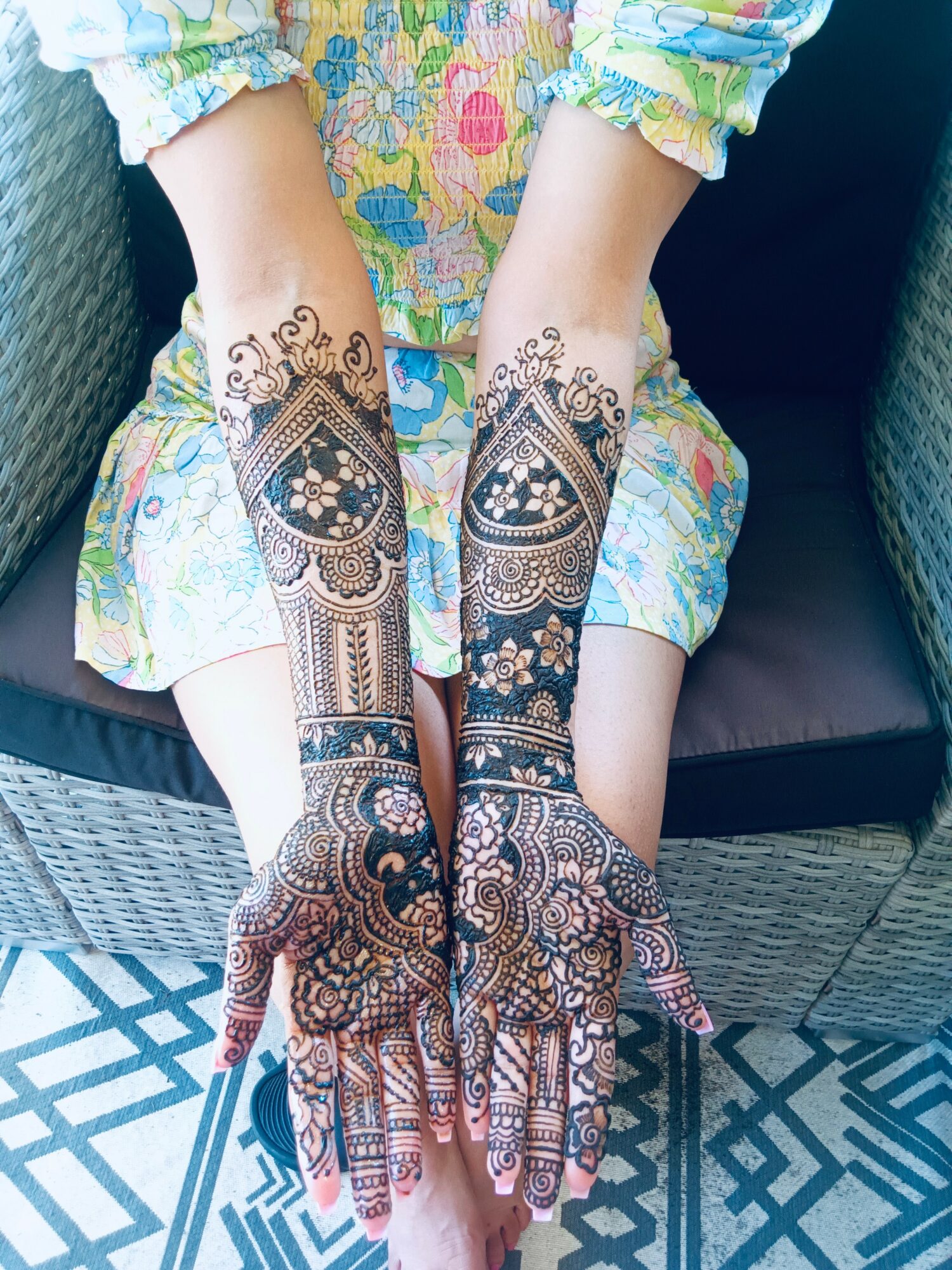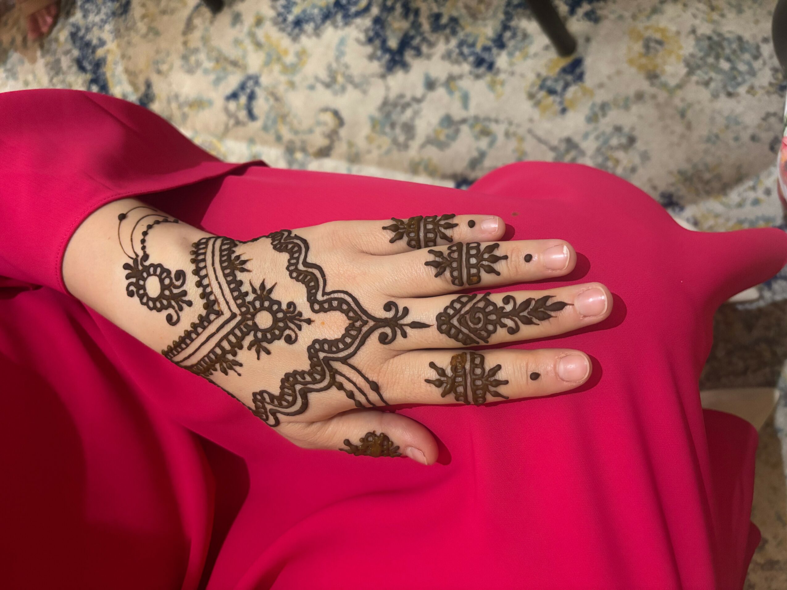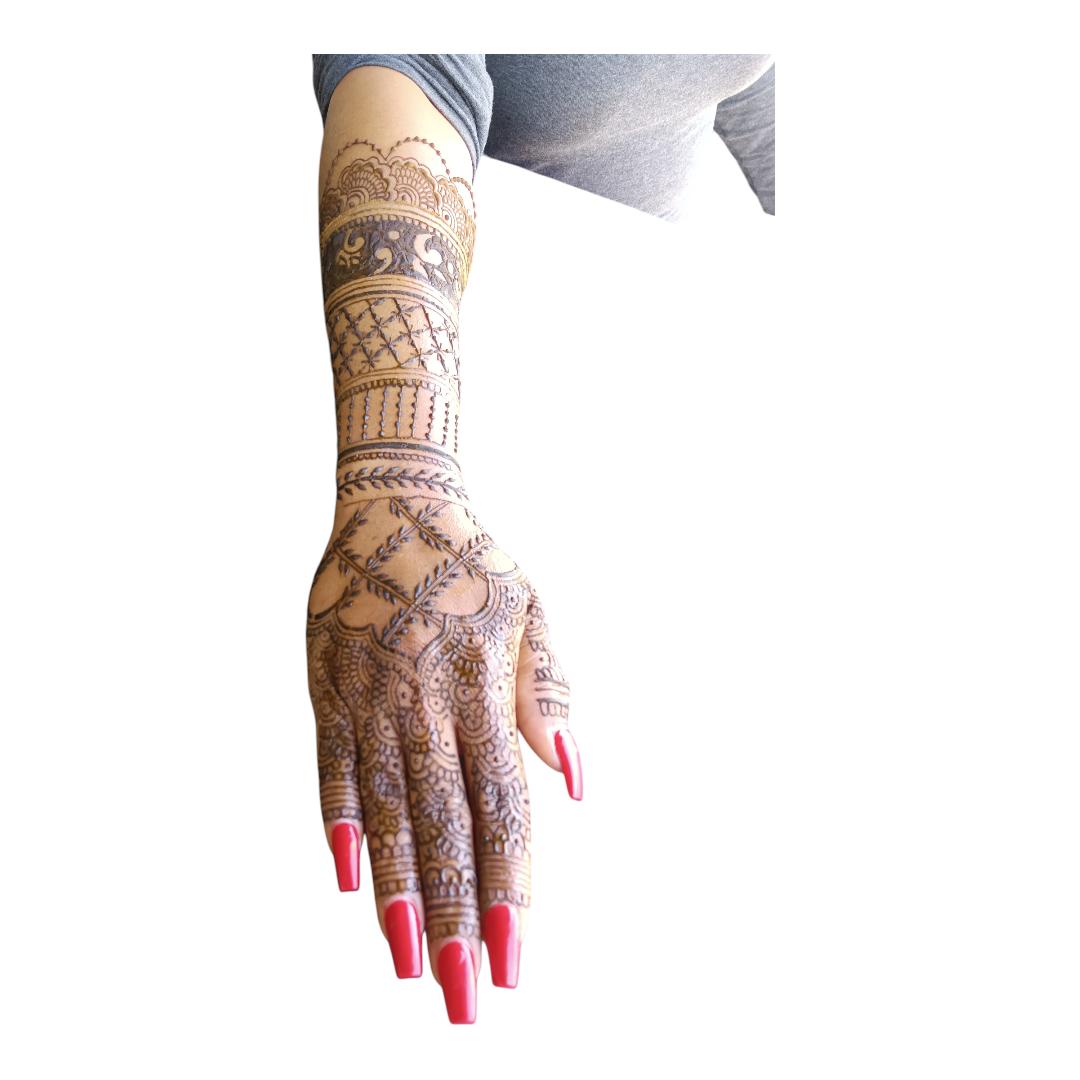 I’m also committed to high-quality service. I use the best natural henna products that are safe and long-lasting. I provide aftercare instructions, work within the client’s budget, and adjust to timings that suit their schedule. I travel for events and work long hours—often without breaks—because ensuring my clients are happy is my top priority.