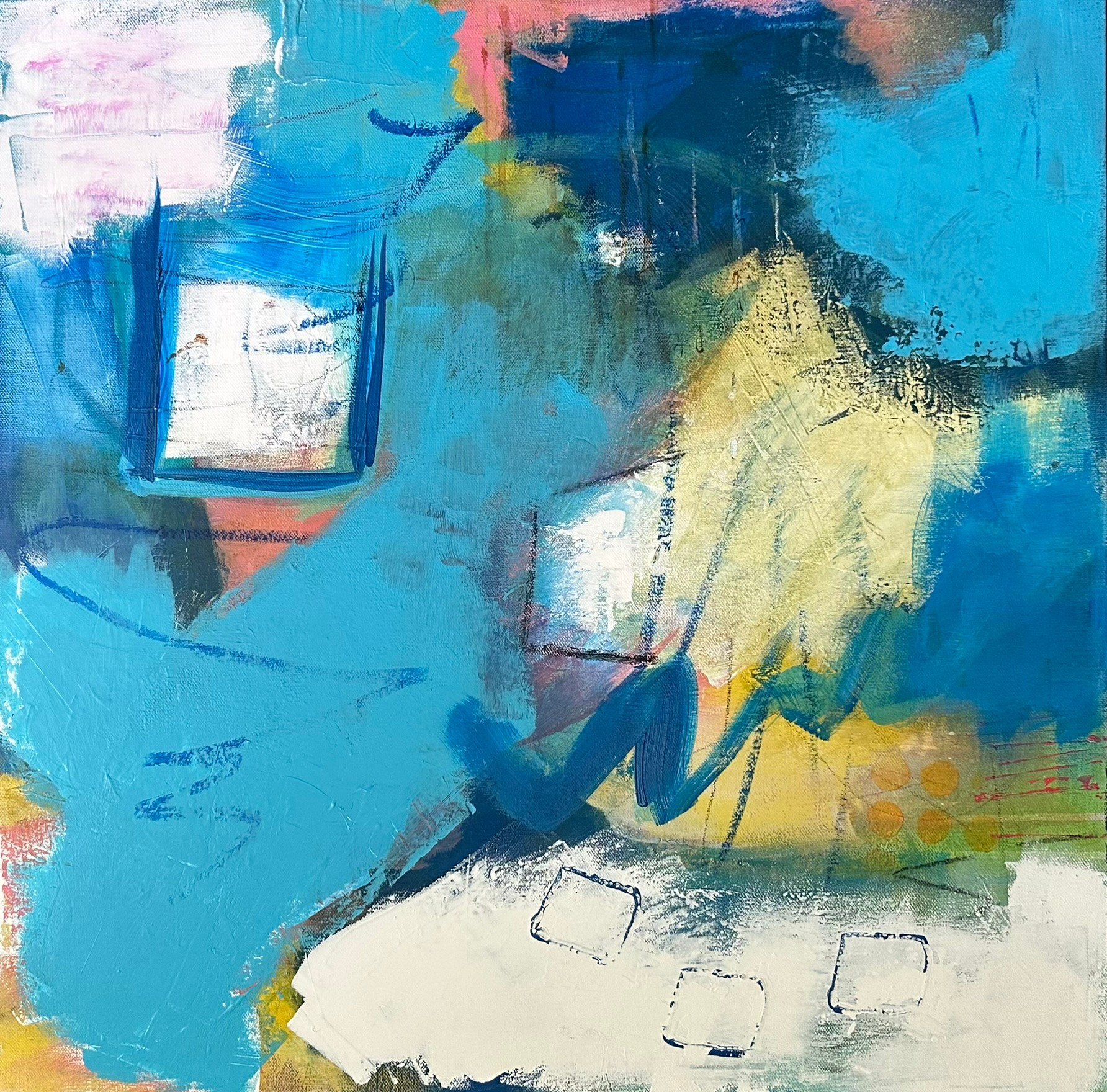 My work centers on abstract painting and mixed media, driven by a fascination with color, movement, and layered mark-making. I’m interested in the tension between control and spontaneity—how a painting can begin with a simple gesture and evolve through many layers until it finds its own rhythm and structure.