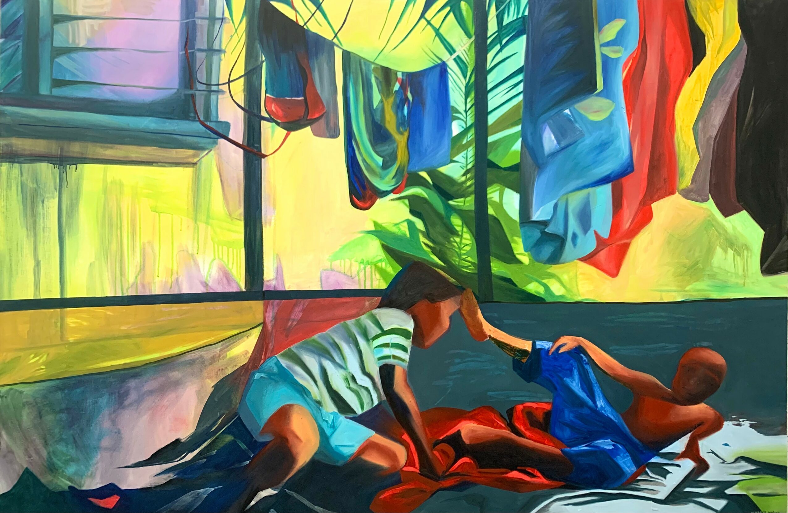 I’m a multidisciplinary artist, with a focus on figurative painting. My practice explores the experience of living between cultures. I work with a very intentional and limited color palette: the primary colors, along with black and white. This choice is both nostalgic and deeply meaningful to me, as the primary colors are also the colors of the Venezuelan flag. While the reference is subtle, it carries a powerful emotional weight.